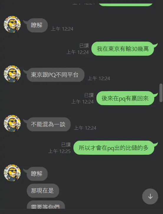 我現在還卡著那40幾萬,扣掉之前輸的,總之就是一肚子火。各位,如果有誰也遇過這種鳥事,尤其是PQ多京娛樂城、強強滾娛樂城或ac1娛樂城出金被坑的,歡迎一起來分享經驗,一起硬起來報警,我不信抓不到這些王八蛋。165專線就在那邊,打了他們就慫,集體行動絕對有效,別讓這些娛樂城詐騙繼續害人。誰有類似截圖或證據,一起po上來曝光博評網、