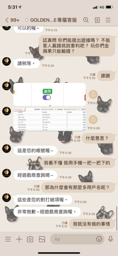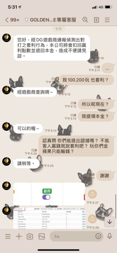 金蘋果娛樂城真的很誇張,續儲活動說好流水5倍打完就可以,結果我照做了,一筆一筆慢慢打,才贏個500塊,就被說套利對打。打的金額也才100、200而已,根本就正常玩,流水也是照他們規定來的,還能說套利,完全沒道理。