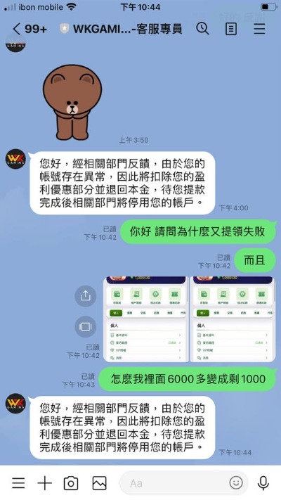 幹!真的氣死!WK娛樂城他媽的黑網,打賽特好不容易贏了六千多塊,結果咧?直接給你盈利全部扣掉,說什麼打賽特也能異常?五六千塊都輸不起是在玩屁啊?叫我提領本金就好,當老子時間很多是不是?