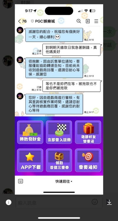 PGC娛樂城真的讓人超無言,輸贏都不敢面對,贏了十幾萬竟然一毛錢都不給,還把我的本金砍了一半!我也才贏個六位數而已,結果本金四萬說只退兩萬,這是什麼道理?代理更不用說,事情不處理就算了,還一副愛理不理的樣子,這種態度真的讓人氣到不行,完全沒誠信可言。