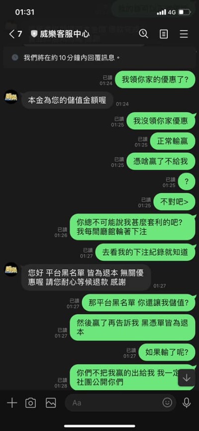 我一定要把這件事曝光出來,讓大家看看威樂娛樂城的真面目!