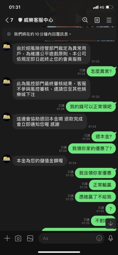 我已經跟他們客服吵了好幾天了,他們就是不給個明確的說法。我辛辛苦苦贏來的錢,他們說不給就不給?